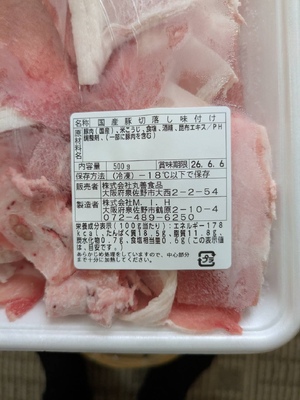 豚肉(宮崎、鹿児島 他)、こめ麹、塩、酒精 昆布エキス、PH調整剤(一部に豚肉を含む)、加工地:泉佐野市