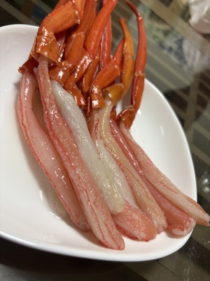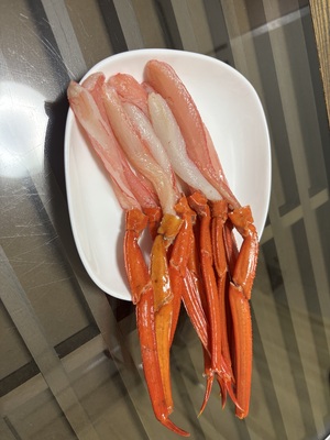 思ったより身が細く殻がついている分、正味400g位でした。かにしゃぶにしましたが更にほそくなりなます。そのまま食するのが良いと思いました。