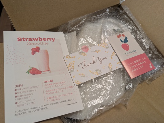 いちごの品種は選べませんが、届いてからのお楽しみ。品種ごとに異なる甘みや香りを味わえるのも魅力のひとつです。大きさや形が不揃いのいちごを使うことでお手頃価格を実現しながらも、味や風味はそのまま。フードロス削減にもつながるサステナブルな商品です。
