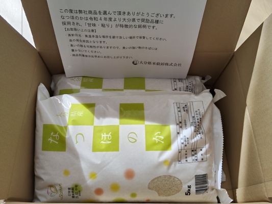 | 容量 | 5kg×2袋 名称:精米 品種:なつほのか 産年:令和7年産 使用割合:単一原料米 |