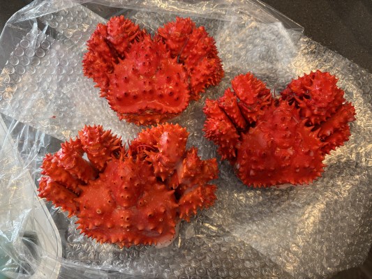 インターネットのサイトから頼んだ後、1週間して届きました。箱から開けた瞬間びっくりしました。大きな蟹が3匹も入っていて、とてもおいしかったです。家族は皆は蟹が大好物です。また来年も年末の時、家族はもう ... 続きを読む