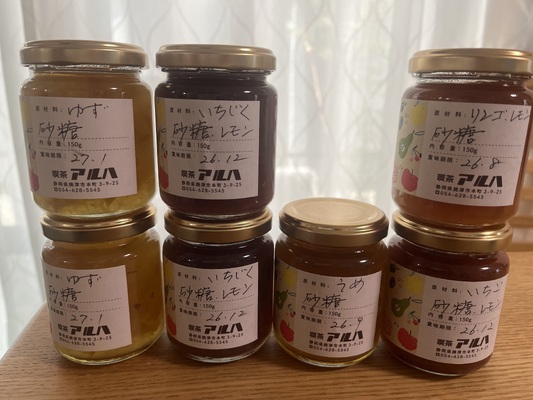 市内の喫茶店店主が、心を込めて手作りしている、果物・砂糖・レモンのみを使用した無添加無農薬の安心安全なジャムです。プリザーブスタイルで果物の味、果実感を活かし製造した「世界に一つの味」です。トーストにはもちろん、ヨーグルトにのせたり、紅茶・ミルクに溶かしたりしてお召し上がりください。※プリザーブスタイル(プレザーブ)とは、果肉を残した製法です。 ジャム工房