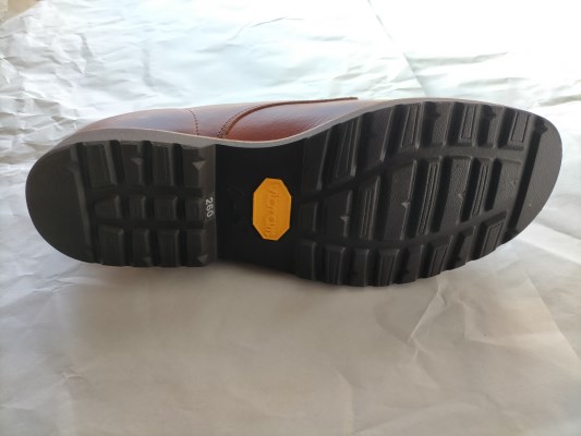 キャメルカラーの優しい色の革で、ほど良い皺感と厚めの革が足を包んでくれます。