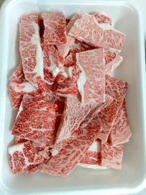 厚切りの切り落とし霜降りお肉をご堪能ください。