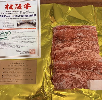 区域内で、肥育された松阪牛を精肉した商品です。(ただし、流通構造上、区域外の生産区域で肥育された松阪牛と混在することがあります。)(告示第5条第4号に該当)