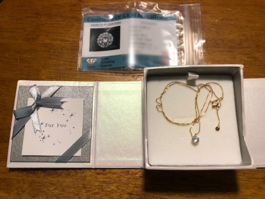 透明感、輝き。想像していた以上の、とても美しいダイヤモンドが届きました。チェーン幅もダイヤとのバランスがカンペキでした。