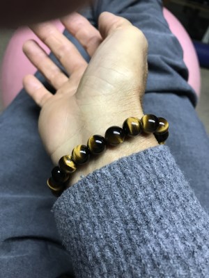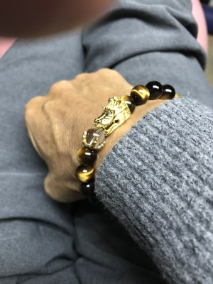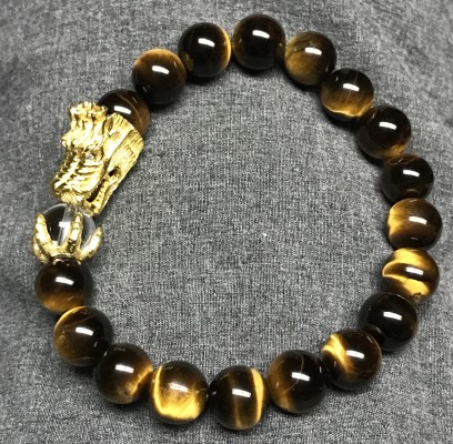 山梨県甲府市にて製作 ドラゴン虎目石ブレスレット 宝珠は水晶 紳士向きサイズ
