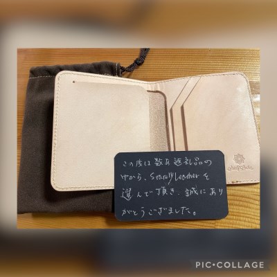 コンパクトなお札とカードが入る財布を探していた時に偶然見つけました。注文して、すぐ商品も届きました。届いた時に手書きのメッセージカードも同封されており、とても丁寧な取り扱いでした。