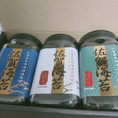 佐賀海苔の味海苔・焼海苔・塩海苔の3本セットです。