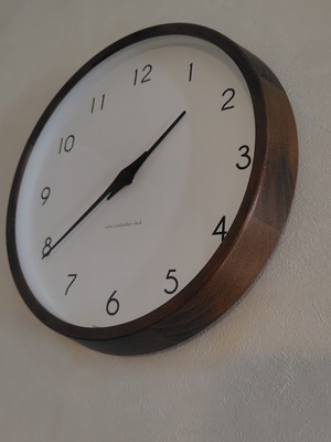 我が家のチェストナットブラウンのインテリアにマッチする時計を探してこの時計にたどり着きました。