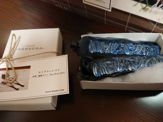 | 容量 | ガラス製カトラリーレスト 2本組 カラー:クリア、ブルーよりお選びください。 素材:耐熱ガラス サイズ:長さ8cm |