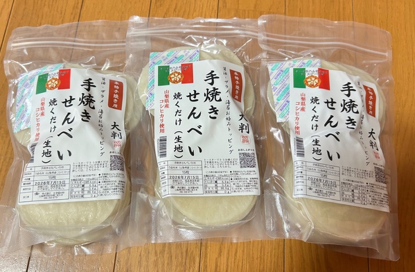 手焼きせんべい生地15枚×3袋(山梨県産コシヒカリ使用)