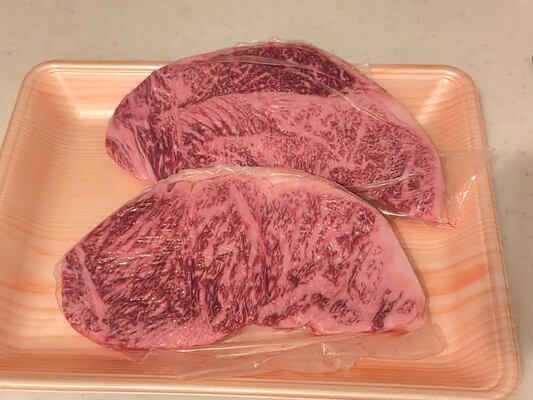 一枚はサーロインステーキらしかったですが、二枚目は真ん中に筋が入っていました。