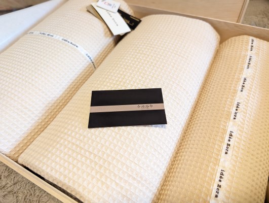 細番手の糸を使用し、パイルのないワッフル織りで凹凸感を出し、素材の質感を表現しています。