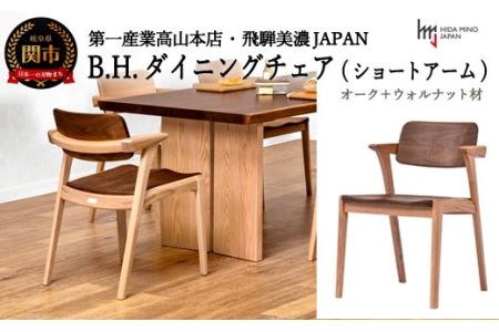 D145-03 B.H.ダイニングチェア(ショートアーム)【オーク材+ウォルナット材】JBH-DCX201A PNO+W