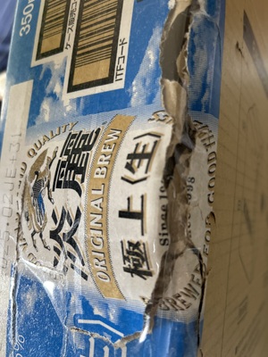 ほとんどの缶はベコベコに潰れていて、ぼろぼろに破けた箱をテープで補強してありました。