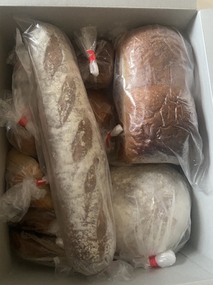 ハード系のパンが主体の”ベーカリーバカンス”と2021年6月にオープンしたクロワッサン専門店の”ル・クロワッサン・ド・バカンス”姉妹店の2店舗の代表的なパンを7種類・11個詰め合わせたセットです。両店共に、自社農園の小麦と国産小麦のみを使用してます。