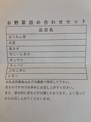 ・旬の野菜をお届け致しますので、品目は季節によって変わります。内容につきましては、お選びいただくことができません。ご了承の上、お申し込みください。