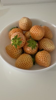 果皮が白みがかった淡いピンク色で、果肉中央部分も白い苺です。味は酸味が控えめで、糖度が高く甘味が強い特徴があります。口に入れると白いちご特有の優しい香りが広がります。