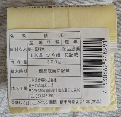 山形産つや姫を無洗米加工し、2合(300g)の使い切りサイズで真空包装した商品です。精米日から1年間美味しくご賞味いただけます。