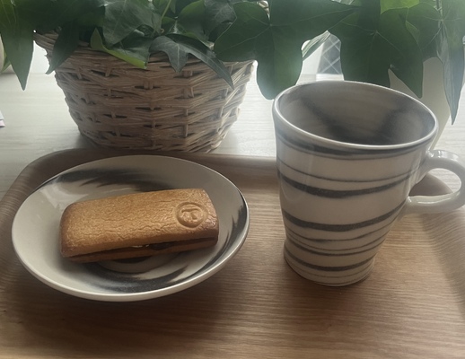 純白の半磁器粘土に、オリジナルの半黒磁器粘土を練りこんだ、手作りでしか作れない世界で一つだけのコーヒーカップ。