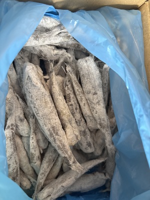 食べやすいように頭と内臓をとって下処理を済ませ、塩・コショウで薄く味付けをしたのち、 片栗粉を付けて一尾一尾凍結しております。