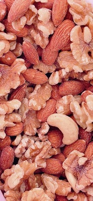 アーモンド(アメリカ産)、くるみ、カシューナッツ (アーモンド、カシューナッツは焙煎。くるみは生。)