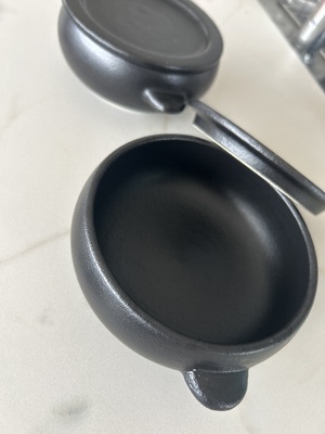 蓋付なのでレバーとかオーブンで破裂してしまう物を入れても大丈夫だし。スープをそのまま出してもコロんとしてかわいいんです!