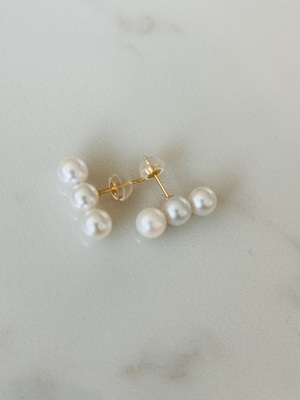 上品なホワイトピンクの真珠を使用した3連ピアスです。