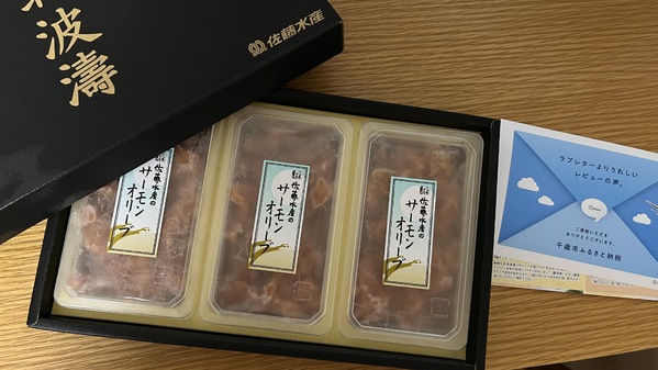 佐藤水産さんのサーモンオリーブ、以前北海道土産でいただきました。