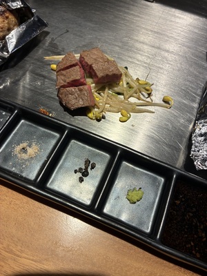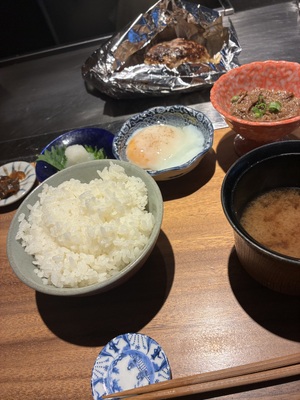 期待以上でした。ハンバーグは肉汁たっぷり、色々な薬味で頂くステーキも美味。甘辛く煮詰めた牛すじ煮込みもご飯が進みました。赤だし味噌汁も美味しくて胃に沁み渡りました。〆のシャインマスカットのゼリーは爽や ... 続きを読む