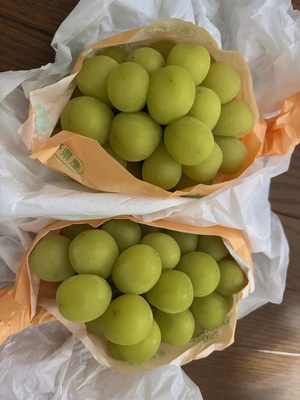 子どもが大好きななシャインマスカットで、食べきれる量でお手頃価格なこちらの品をお願いしました。