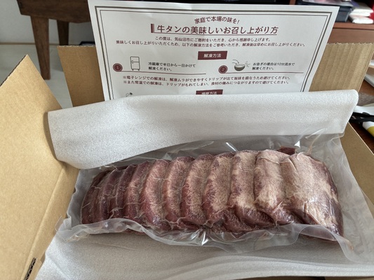 かなり厚めの牛タンが届きました。見た目とても美味しそうです。
