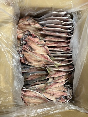 流通商品の規格外のサイズや、多少キズがついたり頭の部分が無いひものなどが入ったりします。もちろん味には問題ありません。