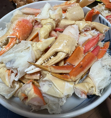 大きな蟹の足セットです。新鮮な甘味で,とても美味しいかったです。