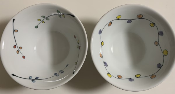また、釉薬の上に色を付ける「上絵」ではなく、早い段階の焼成前に色を付ける「染付」なので、