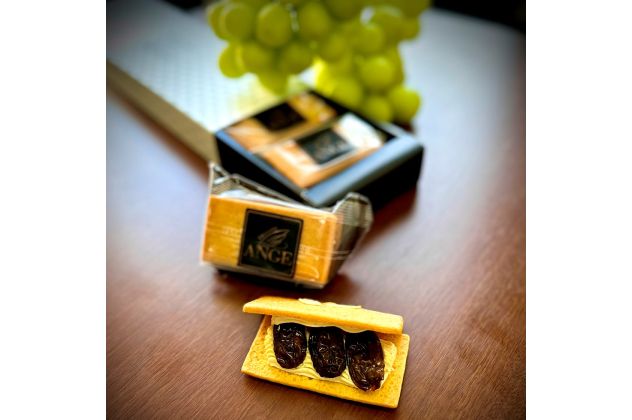 大人気の高級シャインマスカットの生レーズン(花巻 佐藤ぶどう園生産)を使用しクッキー、クリーム共にアールグレイ(紅茶)味わいをプラスし更なるマリアージュを作り出しお召し上がり頂く方々に満足のいく味わいに仕上げました。