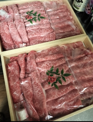 | 容量 | 長崎和牛 すき焼き用ロース 約800g+すき焼き用霜降りカタ 約800g ×3回定期便 ※各部位とも約400gパックを2パック(各計800g)ご用意しております。 |