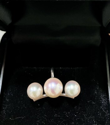 色味が素敵で存在感もあり、大変気に入りした。真珠3連デザインは直線配置のものが多いように感じますが、こちらは緩やかなカーブになっており、顔や耳に馴染んでくれました。また顔のくすみを飛ばして顔まわりを華 ... 続きを読む