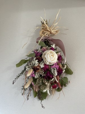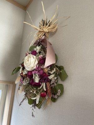 福岡市で製作したドライフラワースワッグ(ピンクブーケM)
