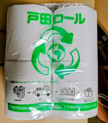 戸田市内で発生した古紙を一部使用してトイレットペーパーの生産を行っています。