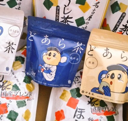妙香園の看板商品と地元球団のドラゴンズ人気キャラクター「ドアラ」をデザインした「どあら茶」の詰合せになります。