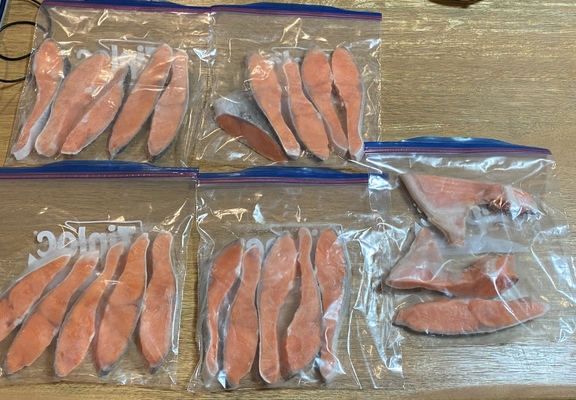 個別にラップして冷凍庫で保存したのですが、脂がのっているようで滑るし、ラップがくっつきにくいしで、作業するのに手こずりました。