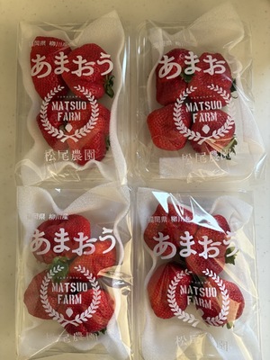 大きい粒のイチゴがワンパック7~8粒入っているものが4パックありました。これぞ「あまおう」という感じの大きさと美味しさでした。