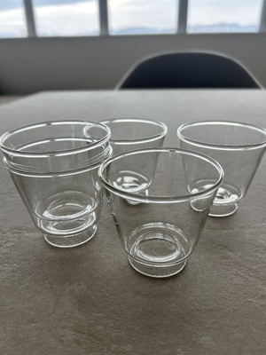 とーーーっても小ぶりなグラスです。来客時にお出ししてますが一口サイズかなー!使える用途はたくさんあって、フルーツゼリー入れたりプリン作ったりするのにもピッタリなサイズです。大きい物だとドリンクも残した ... 続きを読む