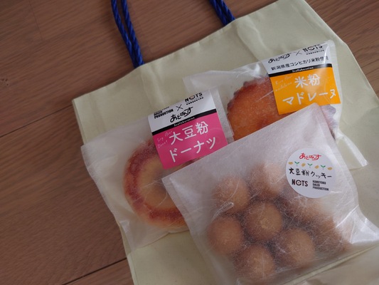 | 容量 | 大豆粉ドーナツ5個、大豆粉クッキー2個、米粉マドレーヌ5個、米粉クッキー2個 |