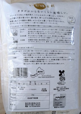 | 容量 | 【内容量】 いちほまれ 2kg × 1袋(無洗米) 【アレルギー】 特定原材料8品目および特定原材料に準ずる20品目は使用していません 【原材料】 米:いちほまれ |