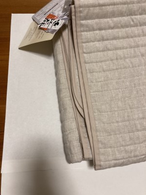 掲載写真の色はオフホワイトっぽいですが、実物の色は濃い生成り~薄茶っぽい色で、ちょっと期待とは違いました。