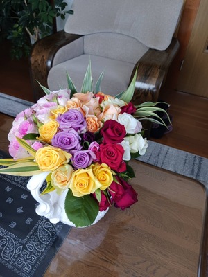 とてもたくさんのバラとグリーンをアレンジしていただきゴージャスな花束を届けていただきました。到着日のお願いも柔軟に対応いただきとてもありがたかったです。プレゼントにしましたがとてもよろこんでもらえまし ... 続きを読む