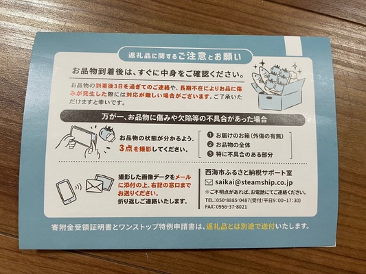 下記『西海市ふるさと納税サポート室』までご連絡ください。